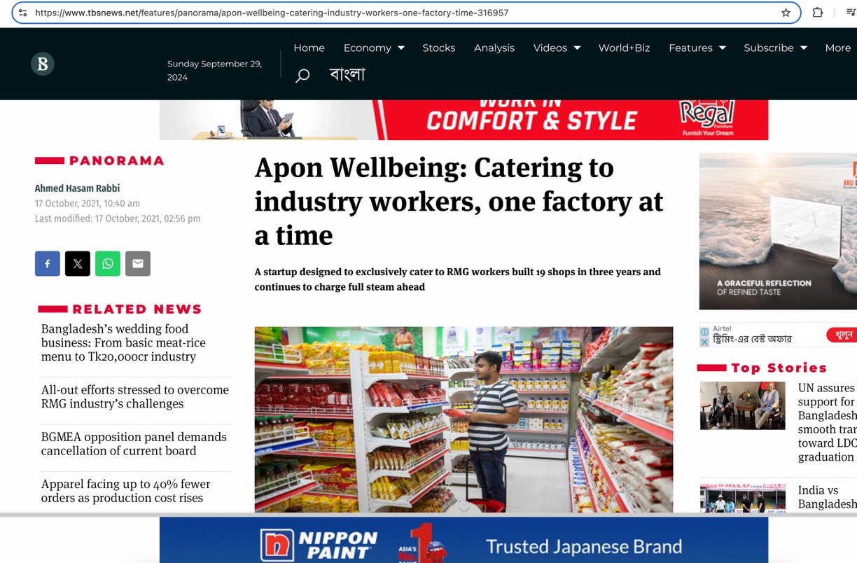 Apon is a wellbeing platform for the 7 million low-income industrial workers in Bangladesh. We understand the immense struggle of navigating a system where affordable credit remains elusive. Traditional lending options often trap workers in a cycle of debt with exorbitant fees and out-of-reach terms. Here's where Apon steps in, offering a breath of fresh air. We give instant access to up to 30% of your salary as zero-interest credit. Use it at Apon grocery store, enjoy discounts and additional perks or withdraw cash during an emergency. Providing a substantial safety net to cash-crunch workers. The physical stores, assisted by Apon Agents and a dedicated app, streamline transactions repayments, and ensure a one-stop solution. Having already positively impacted the lives of 170,000+ workers by generating $700,000+ in savings, Apon Bazaar envisions expanding its reach to empower 1 million industrial workers.